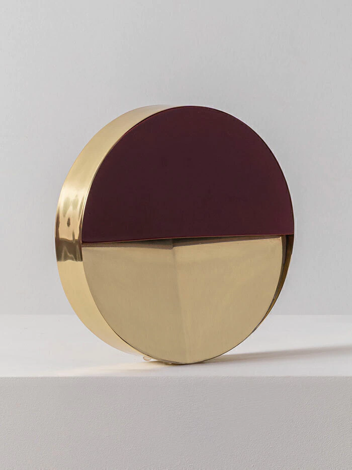 Arandela feita em latão, com detalhe em cerâmica, com fio (para ligar em tomada,